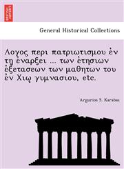 Λογος περι πατριωτισμου ἐν τῃ ἐναρξει ... των ἐτησιων ἐξετασεων των μαθητων του ἐν Χιῳ γυμνασιου, etc.