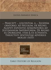 The Title "... Praecept ... lescentum, a ... Ejusdem oratorio, ad Nicolem, de regno. Agapeti expositio admonitoria ad Justinianum Imperatorem. De regno ex Dioregene, item & ex ecphante. Theoctisti sententiae adversus molles (1653)" is written by Lucius Annaeus Seneca. This book was published in the year 1320. The ISBN number 117129817X|9781171298175 is assigned to the Paperback version of this title. This book has total of pp. 168 (Pages). The publisher of this title is Unknown. ... Praecept ... lescentum, a ... Ejusdem oratorio, ad Nicolem, de regno. Agapeti expositio admonitoria ad Justinianum Imperatorem. De regno ex Dioregene, item & ex ecphante. Theoctisti sententiae adversus molles (1653) is currently Not Available with us.You can enquire about this book and we will let you know the availability.
