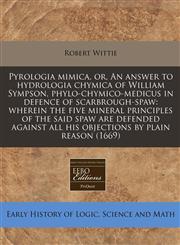 Pyrologia mimica, or, An answer to hydrologia chymica of William Sympson, phylo-chymico-medicus in defence of scarbrough-spaw wherein the five mineral principles of the said spaw are defended against all his objections by plain reason (1669)