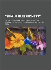 "Single Blessedness"; Or, Single Ladies and Gentlemen, Against the Slanders of the Pulpit, the Press, and the Lecture-Room